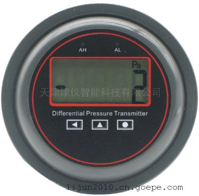 通电状态下,按压右边设置键1次,屏幕显示PL,然后再次按设置键即显示00010,代表出厂默认下限值10Pa,压力低于下限值AL闪烁,可通过左移键把光标移到*左边,再按下中间上翻键把0改成“-”,设置键保存,AL灯关闭节电。可移动光标按压上翻键任意设置下限报警值。按压右边设置键1次,屏幕显示PL,再按压上翻键,屏幕显示PH,然后再次按设置键即显示00020,代表出厂默认上限值20Pa,可设置任意值,当压力达到上限值AH灯闪烁并输出开关信号。按压右边设置按键即退出设定选项并进入测量状态。